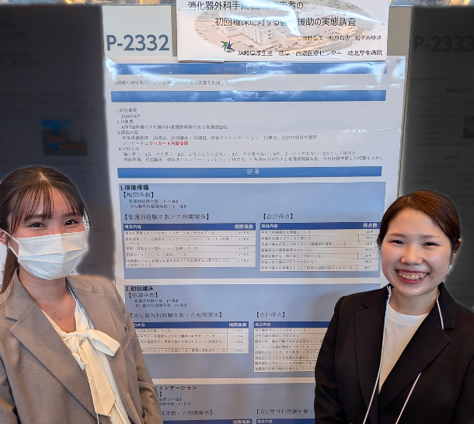 2025年10月23日(木) 第74回日本農村医学会学術総会にて、岐北厚生病院 の後藤看護師、杉戸看護師、松下看護師 が、「消化器外科手術を受ける患者の初回離床に対する看護補助の実態調査」についてのポスター発表を行いました。