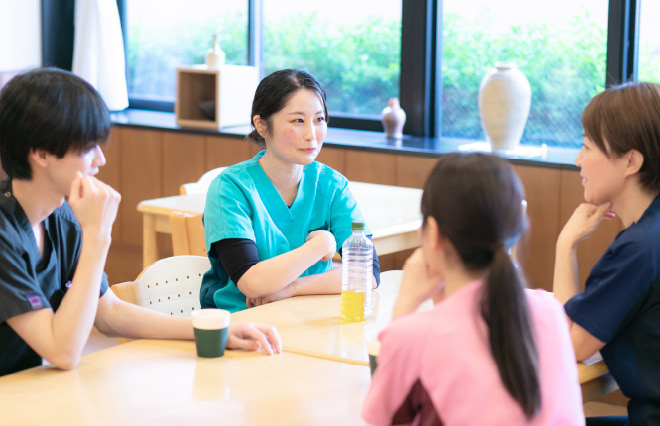 医療が当たり前にある看護師だけでなく、医師や多職種と連携しながら支え合うチーム医療が根づいています。