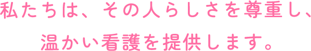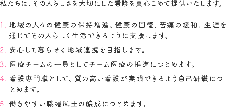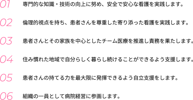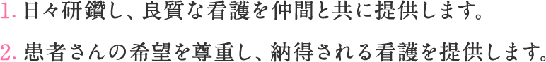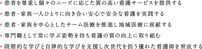 特定の領域において専門性の高い知識と技術を用いた看護の実践により、患者さんに寄り添う「温かい看護」の提供に努めています。