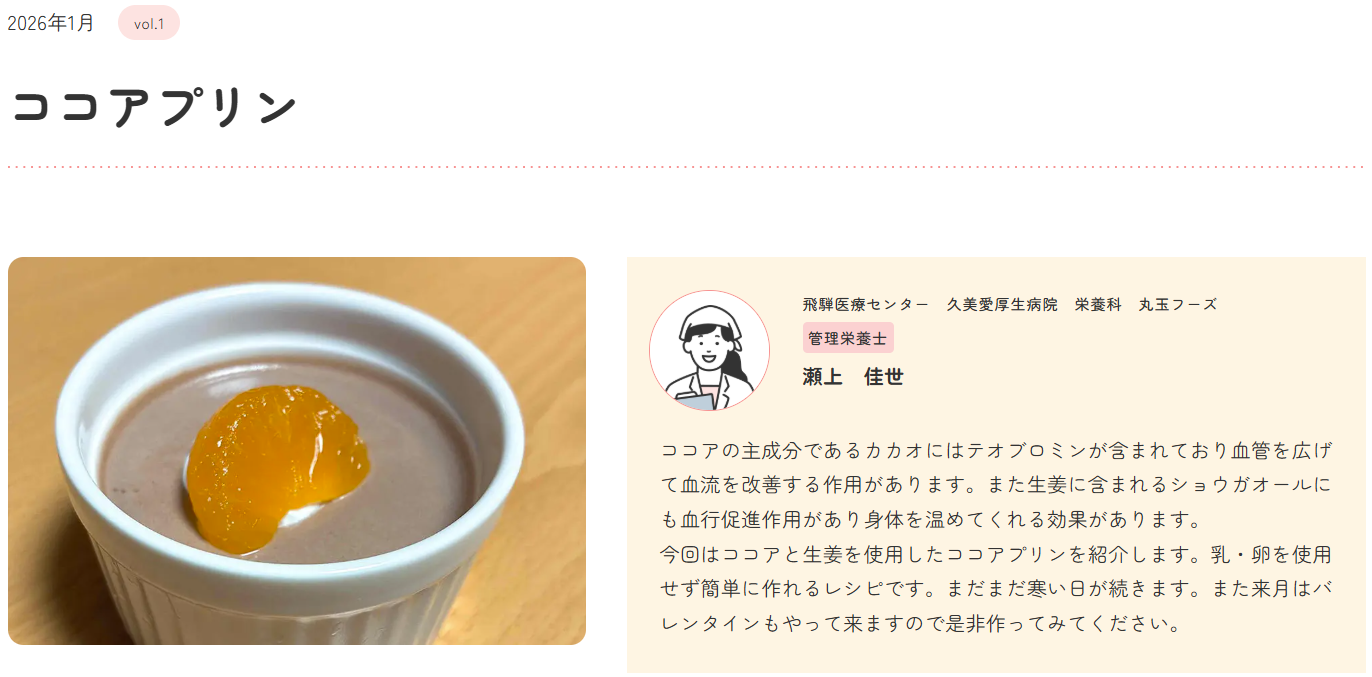 久美愛厚生病院が栄養士監修の「おいしい・かんたん・健康レシピ」コラムをスタートしました