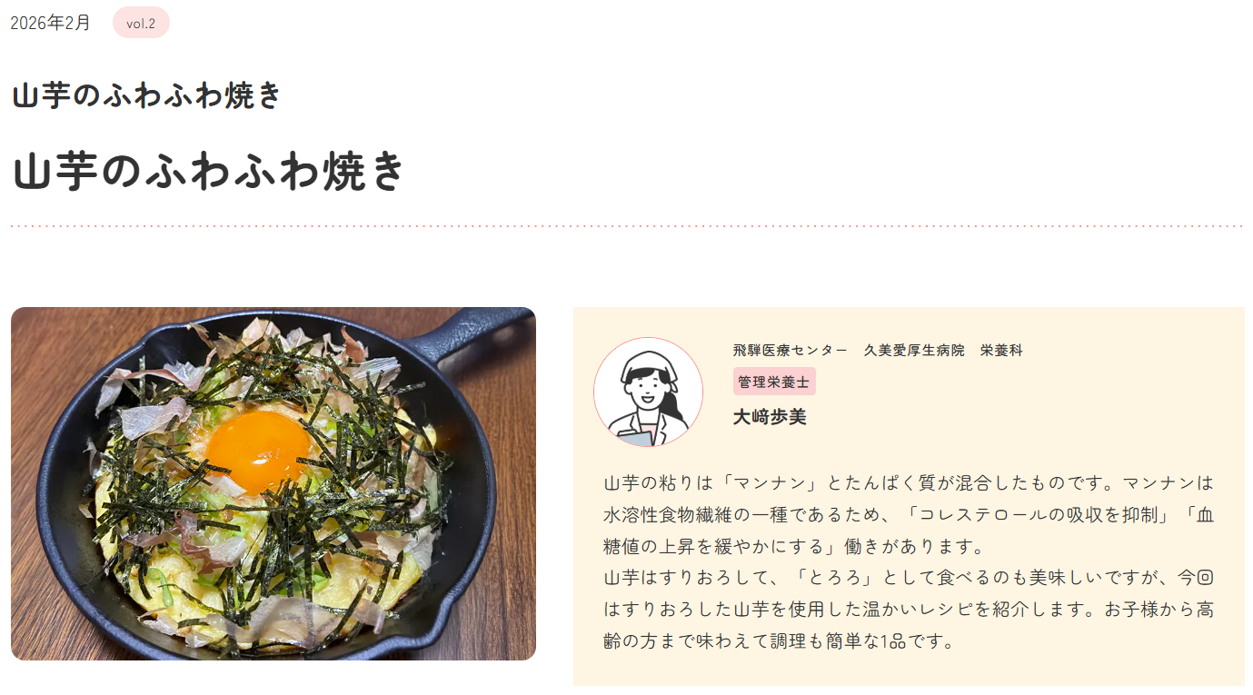 久美愛厚生病院が「おいしい・かんたん・健康レシピ」コラム第2回目を公開しました。