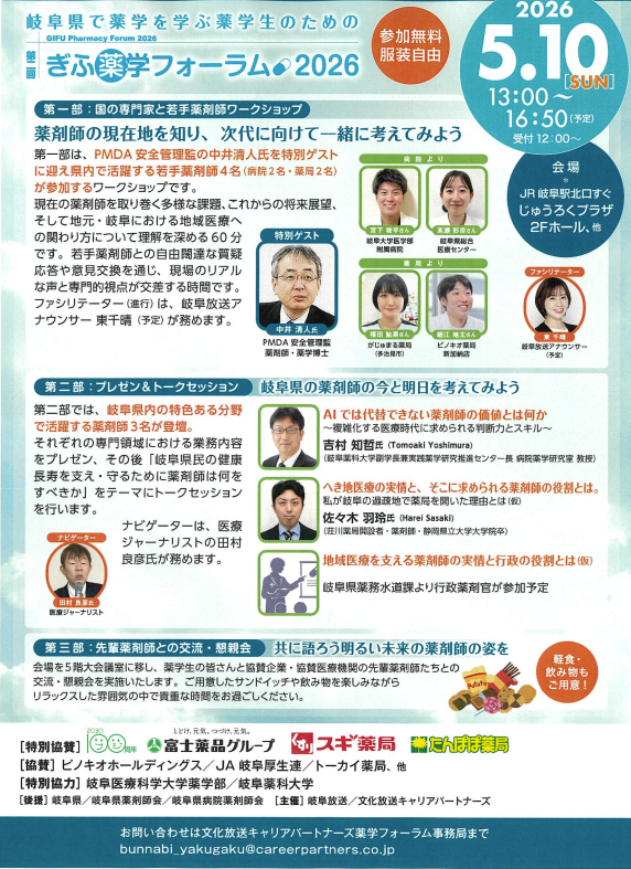 【5/10開催】「第二回ぎふ薬学フォーラム2026」先輩薬剤師との交流・懇親会に参加します