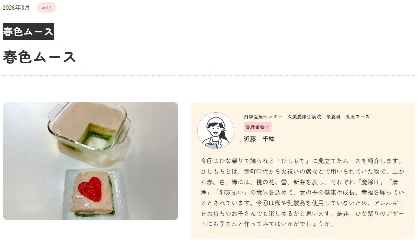 久美愛厚生病院が「おいしい・かんたん・健康レシピ」コラム第3回目を公開しました