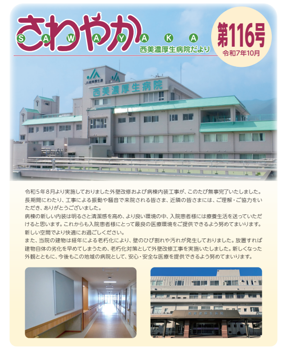 JA岐阜厚生連 西美濃厚生病院が発行する広報誌「さわやか」の最新号(令和7年10月号 第116号)が発刊されました。