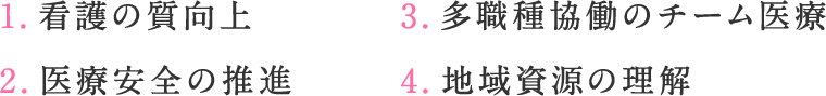特定の領域において専門性の高い知識と技術を用いた看護の実践により、患者さんに寄り添う「温かい看護」の提供に努めています。